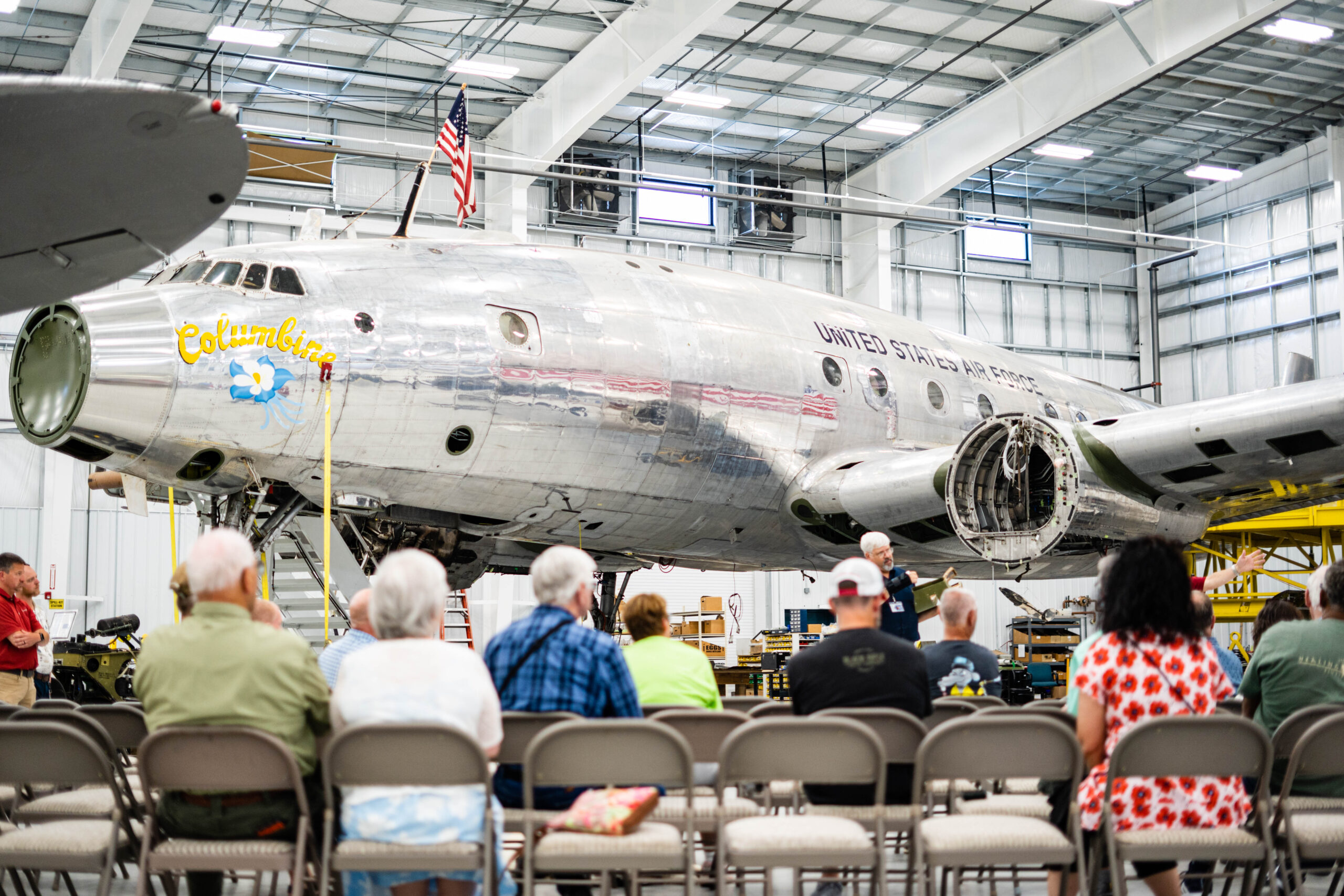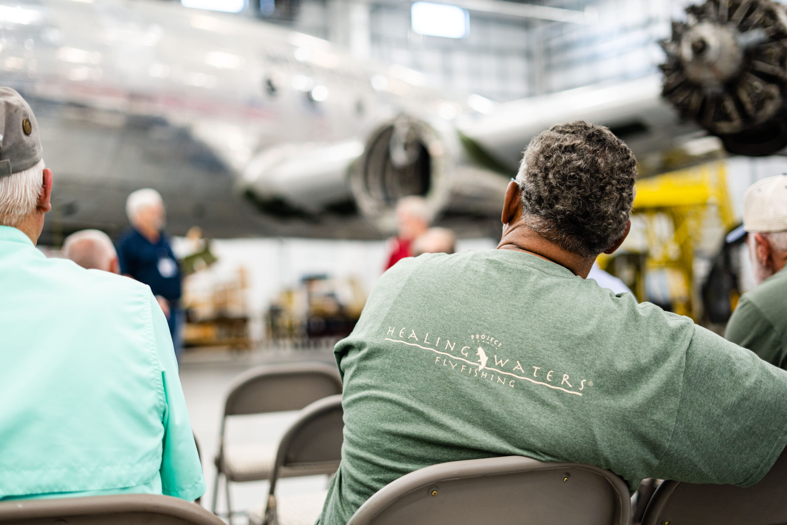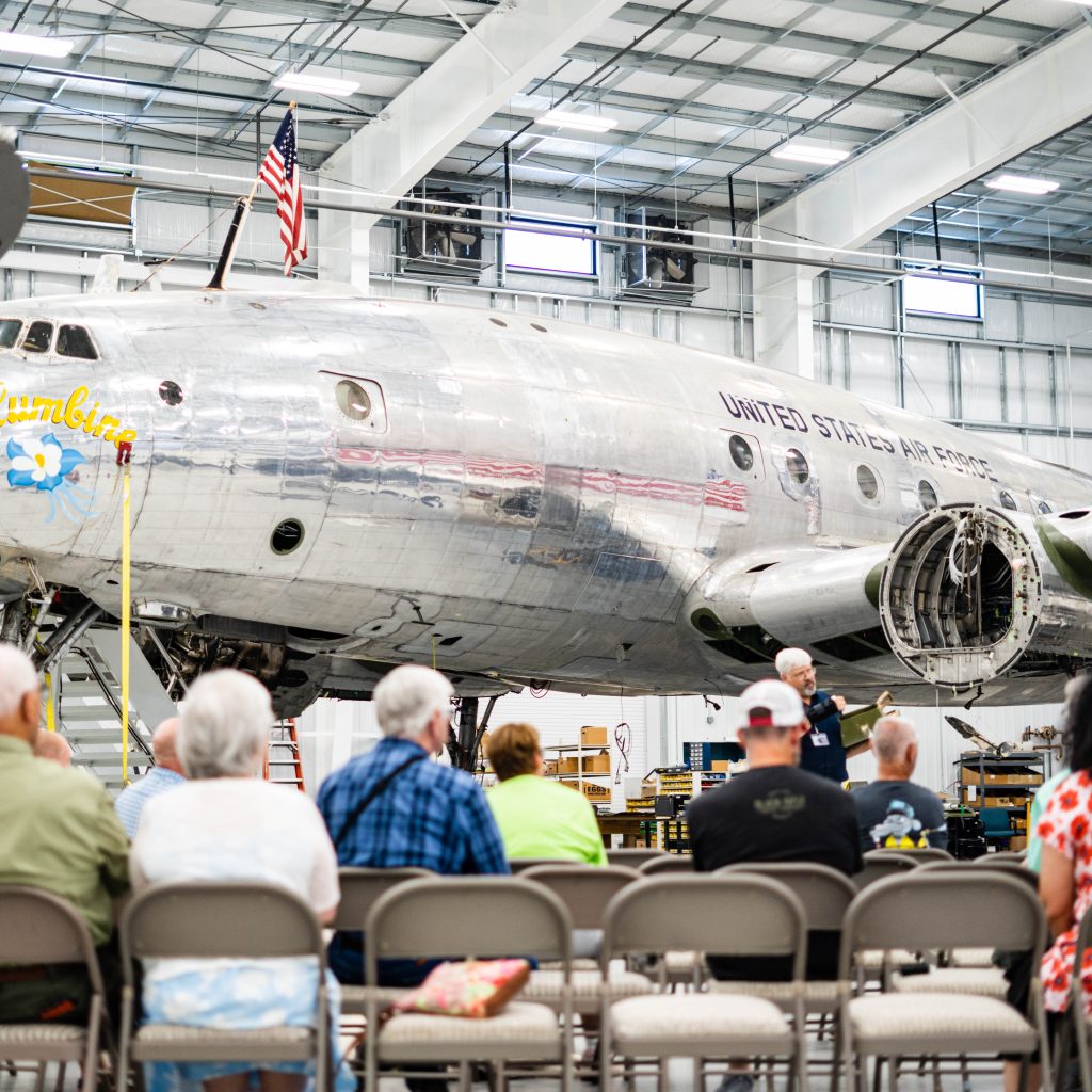 The whole weekend kicked off with an amazing tour of historic aircraft courtesy of wonderful friends of Mossy Creek, Dynamic Aviation. It’s not every day you get to see the original Air Force One, so this was an outstanding opportunity for our Veterans, volunteers, and sponsors. This learning experience and tour was followed by a fabulous dinner at their picturesque red barn up the hill.