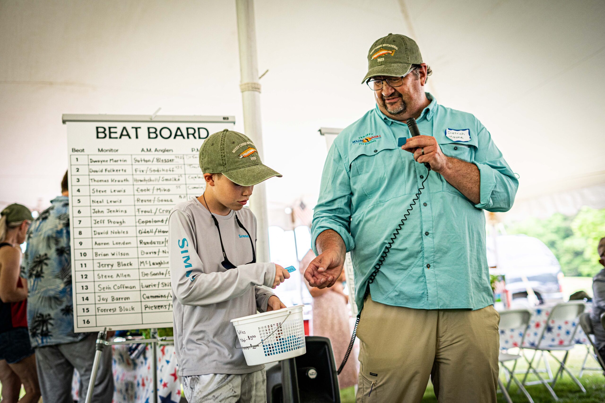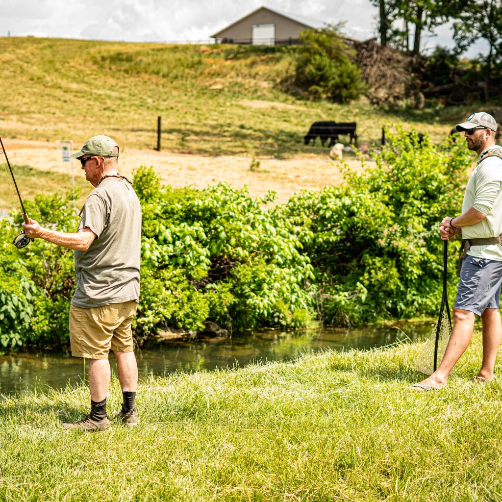 Special thanks to the greater Bridgewater community and local businesses such as Mossy Creek Fly Fishing, Steven Toyota, Bob Wade Autoworld, Harrisonburg Honda, Harrisonburg Hyundai, VAuto, Military Intelligence Corps Association – Potomac Chapter, Sustainable Solutions of Virginia, Engineering Solutions, Media Two Interactive, LLC, Jacktown Restaurants, LD & B Insurance Agency, Vannoy & Associates, Shrock Construction, LLC, Momentum Earthworks, LLC, the Steele Foundation, Inc., and Renzetti, Inc. We cannot forget generous contributions from people in the wider Mossy Creek community, both near and far: Dennis and Joan Kenney, Thomas & Charlotte Trow, Guha Bala, Dan Craytor, Walt Havenstein, Dave Rives, Robert Frisbie, Glenn Nunziata, Sam Chandoha, John & Shirley Seibert, David Secrist, Denise Sousa, Mike Barbero, and Marshall & Dennis Lynch. Plus, the time contributed by all the guides and monitors was both priceless and completely necessary. And the weekend would not be possible without the contribution of essential resources from Reddy Ice, Frank and Kathy Showalter, Ronnie and Debbie Knicely and VA Hunters for the Hungry. Further support came through auction donations from the following: the Washington Capitals, Dietrich and Audrey Maune, Ginger and Donald Usry, Jackie Mann, Sew Caring Stitchers, Jim Harris, David Ray Pine, Eric and Nancy Fitzgerald, Melinda Welker, Smithfield, Andy Shirley and Bridgewater ACE Hardware. The portraits of anglers, delivered to anglers at the end of the fishing day, would not have been possible without the photographic assistance, both on and off the water, of Erica Lewis. It is this community and the unconditional commitment of those who support the Mossy Creek Invitational that we can continue bringing our unique form of therapeutic outdoor recreation to those who have made great sacrifices in the service of our nation.